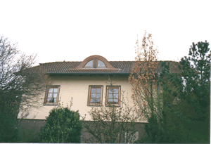 Giebelgaube Die Giebelgaube und die Walmgaube sind in der gleichen Weise mittels einer Kehlbohlenschiftung an das Hauptdach angeschlossen und unterscheiden sich nur in ihrer Dachform voneinander. Solche Gauben sind meist nicht sehr breit und haben selten mehr als zwei Fenster nebeneinander. |